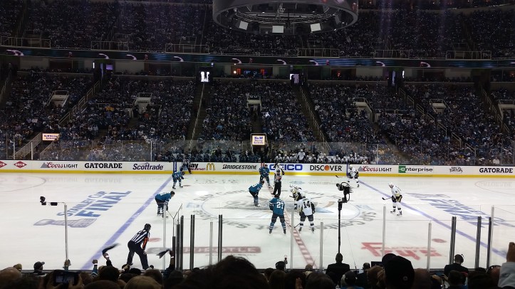 My senior year of high school I was gifted many things. A trip to Paris was one, and seeing the San Jose Sharks in a Stanley Cup Final game was another. It was an amazing experience feeling how excited and connected the crowd was to the game. I got a free T-shirt and a rally towel with the game number and the cup logo with a penguin on an iceberg and a shark circling it.