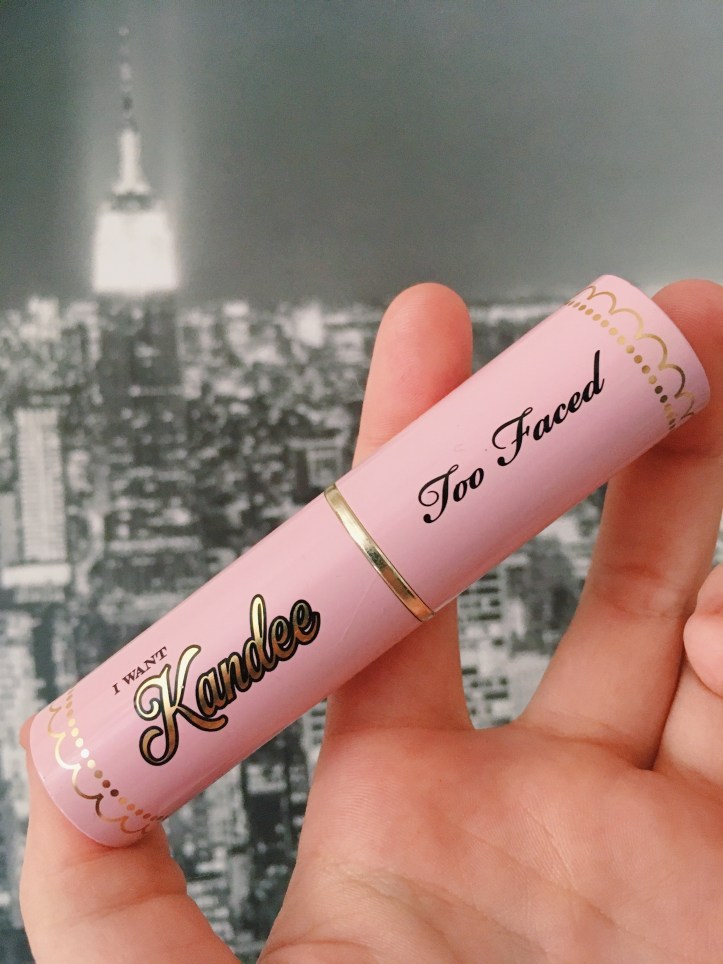 This cute highlighter stick by Too Faced x Kandee is one of my top go tos. The formula is absolutely stunning, from the glitter to the creamy texture and buildable pigment. It does go on kinda pink and less rose gold but is still beautiful on the skin. In a way it’s kind of frosted, very early 2000s vibe. I would buy another highlight stick from them hands down!!