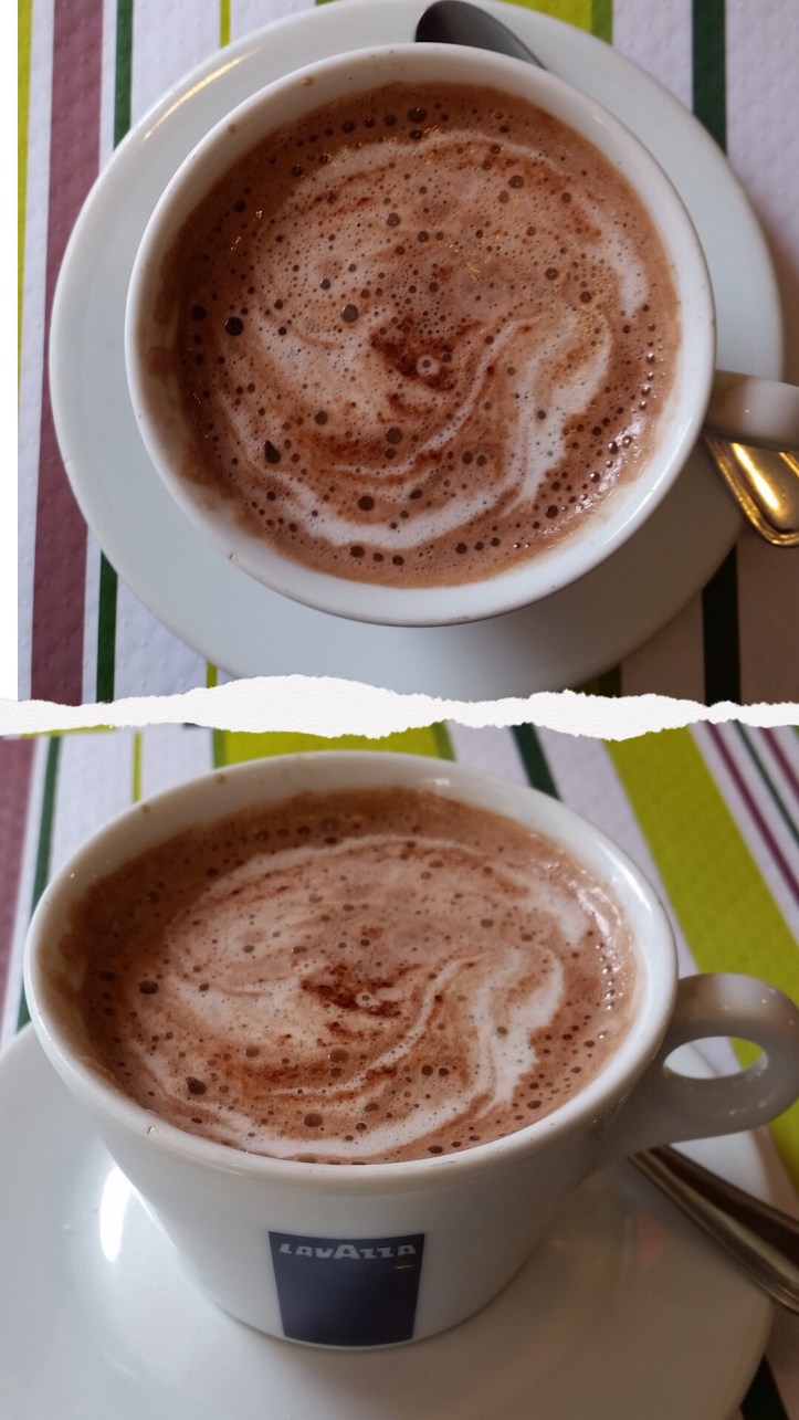 Pictured above is an amazingly creamy and sweet “Chocolat Chaud” from a little French Cafe on Rue de Rivoli near the Louvre and across from a metro station called the Colonnade. It was the absolute best hot cocoa I’d ever had as of 2016. Shockingly it passed the ones I’d had in the Czech Republic or Czechia (if their name change is set?).