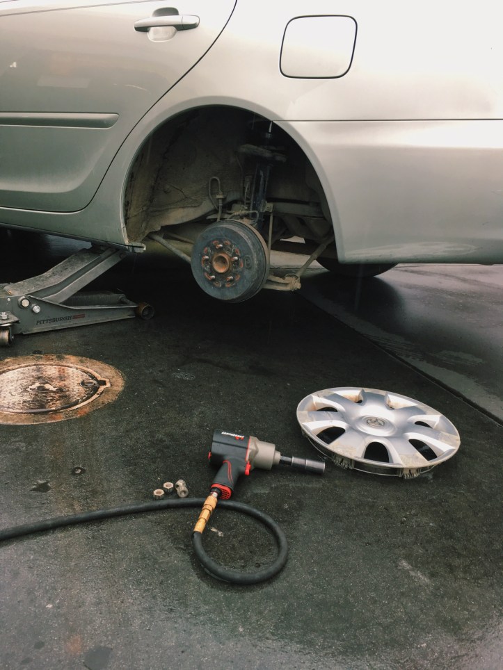 Of course once we figure our car situation out, we get a flat tire. But not just a little flat, a complete flat resulting in scratches on the street and garage from our rim. The guys at the tire store on the corner took our tire with a SCREWDRIVER tip in it and gave us a new used tire with great treading for $40. Not the best start to a new year with a new plan for this car, but it could’ve been a lot more expensive. These guys always hook us up!! 🚙
