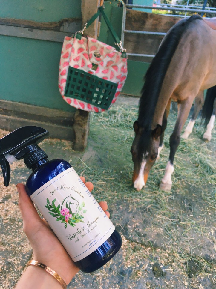 While I wait for our laundry room to get fixed in the next couple of days I thought I would flush out a couple of ideas and thoughts that I’m having on things that I have or have not reviewed fully yet. I have two companies in terms of grooming aids that I would call my “go tos” as I am drawn to super natural ingredients. The first company that I found is Sport Horse Essentials, they offer a variety of different grooming aids from the Waterless Shampoo and Stain Remover, to a coat spray, to hoof oil, to literally the microfiber towels that you would use to use any of those products. The first product I tried from them was their Waterless Shampoo, and it quickly became my favorite thing on the planet. I was still a full time barn manager at the time, and wanted to use the Waterless Shampoo on Caz’s butt since he had a poo butt problem. Unfortunately, I never got the chance to really test it out on him because I left that job shortly after and my lease on Capone was a couple months in at that point so all my resources went to him over the lesson herd. I finished the first bottle pretty quick since it was winter, and I bought another with a coat spray & 2 Snaks 5th Avenchew as part of a kit. I found that their coat spray smelled heavily of vinegar unfortunately, and I pretty much stopped using it right then and there. After a few uses I thought my tack was molding because of the harsh smell, which lead me to make a switch company wise for coat spray.