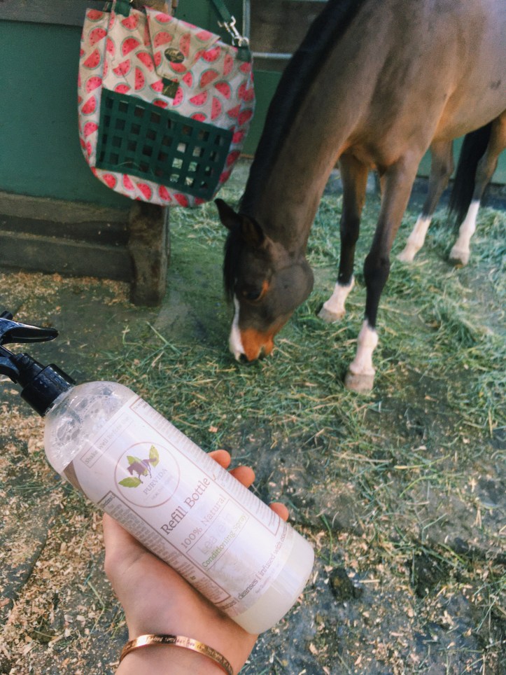 Purvida is another company that I go to for their coat spray specifically. Their coat spray is a conditioning coat spray with a bit of natural fly repellant, sun bleach protection, coat cleaner and perfume for horses if you will. The founder of the company is always so helpful when I have any questions, like recently when I had an issue. To preface the concern I had, my bottle is a bit older so the problem I was having is because of that, but I learned a fun fact about the bottle in general. I cleaned everything I own horse wise including my spray bottles, while doing that I noticed some product build up around the top of my bottle just above the label. Fearing I was going to have to toss my whole bottle, I shot her a photo of the issue I was having and she got back to me within 45 minutes!! She said to shake it up as best as possible, sometimes with colder weather and time the concentrate will congeal back together; BUT she mentioned that the spray nozzle on the bottle itself is basically a super blaster. Meaning, if any of the build up works it’s way up into the nozzle, triggering the spray will atomize the build up for me. I thought that was the coolest thing, especially since my lease is only for 1-3 rides a month so I can’t always be shaking up my bottle. They released a rub on hoof oil which looks very easy to use, but I haven’t tried it out yet. The rub on part is the same concept of a rollerball so I’m worried it would get dirty with each application, but we’ll have to see. They also released a roll on liniment, for horse and rider. I’ve been thinking about getting one to help my back before bed or after a long work day, but I have to wait until I get paid for that splurge.