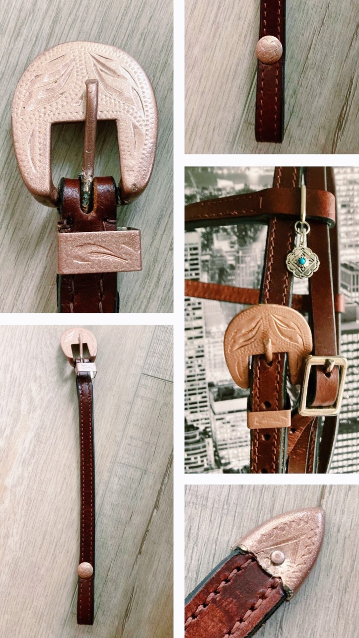 And then after I was done with it and my spray paint this is how it looks now. I’ve wanted my own rose gold hardware headstall for a very long time as stated in many other posts here on Grey2Bay, and now I made my dream come true!! I paired this western bridle with the charm I got for my western headstall from My Charmed Horse, the turquoise western concho charm. If you want your own it’s up on their website here, use code “SARA10” to get a 10% discount at checkout!!
