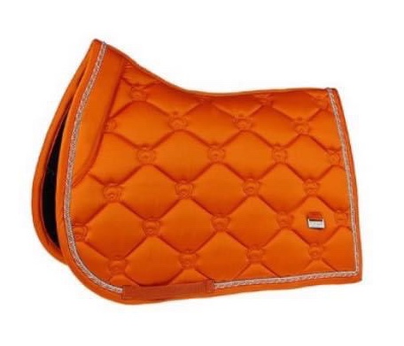 I have always stayed far far away from orange clothing because I don’t find it especially flattering on me all the time. I made an exception for my “warning” orange colored goalkeeper jersey. It was so bright it used to light up my dark closet with its neon aura. Because of that, I have always saved a spot for an orange tack set. My orange collection started with a set of four orange polos I got from the discard pile at Webb Ranch. I thought I would one day turn them into Hermès branded polos with a patch or something, but I have yet to do that. So what better way to put them to use then to buy a PS of Sweden “Sunset” pad so they match.