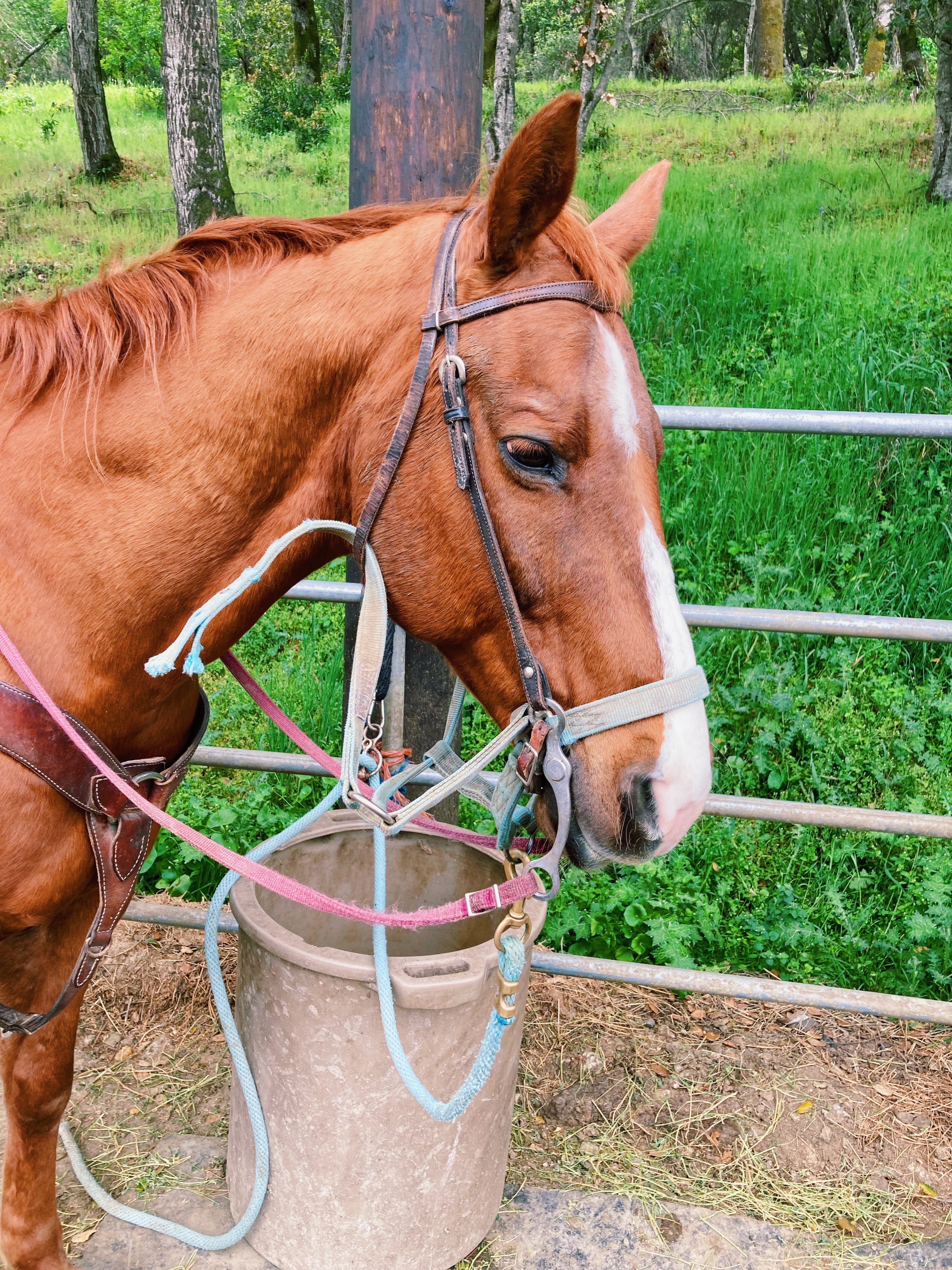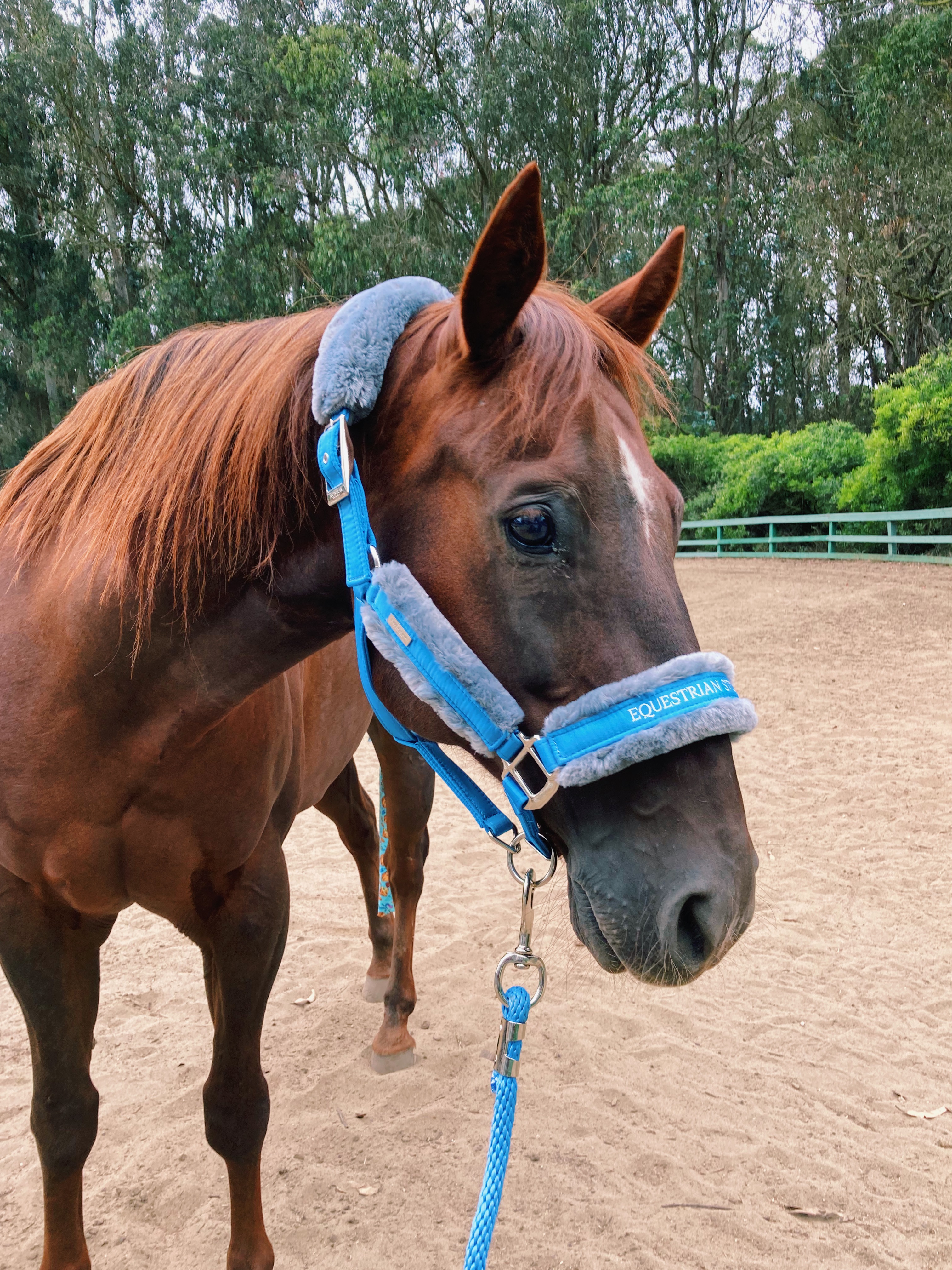 My horses ideally would be in a pasture or a paddock and my students would need to catch their horse for the day. Every horse should have a halter that fits them properly, it should be labeled in case it’s misplaced, and it should be able to break off in an emergency, lead rope included. As cute as my $90 Equestrian Stockholm halters are, I understand they are 110% disposable given how unpredictable life can be. Horses are fight, flight or freeze animals and anything can happen.