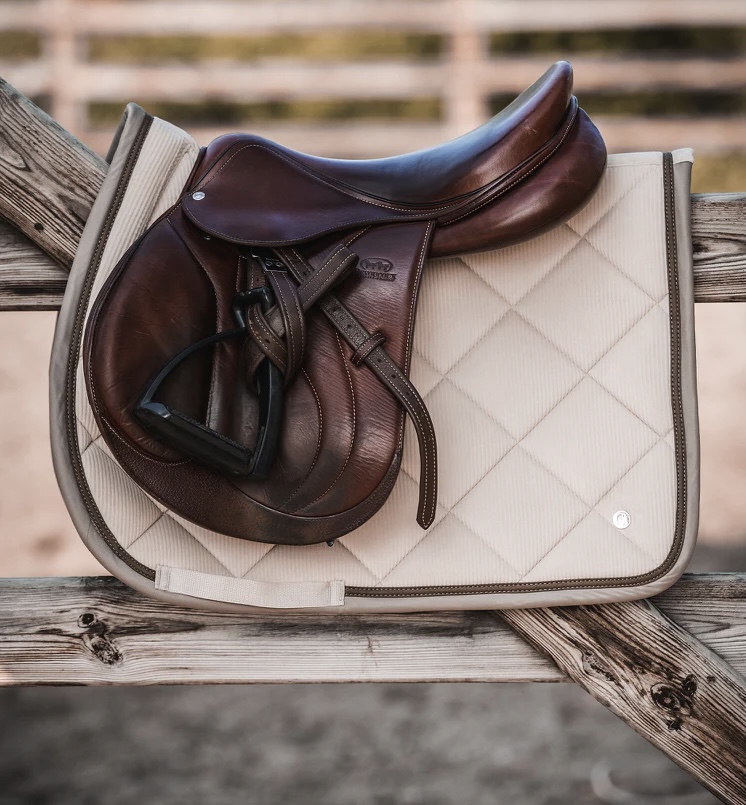 In 2021 I had already started my saddle pad collection. I had, had all my saddle pads stolen at the barn Capone was boarded at and I went on a mission to have only luxury pads. It was fueled by having all my sentimental pads ripped from me, so investing in good pads was my way of honoring them. That being said, I still follow all the riders on Instagram that I posted with when I was actively leasing, and one posted a new tack set. It took me .0001 seconds for me to instantly fixate on this pad and for me to start curating outfit ideas.