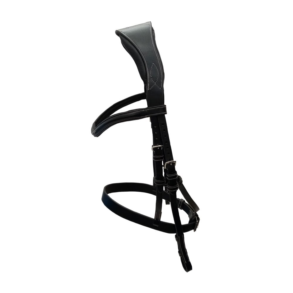 The next feature I love is the cheek, throat and noseband are all connected to the crown piece, meaning you can totally take the noseband off and have it still function as a bridle without risk of slippage. There’s enough cushion on the poll to support less tack on your horses face for this style of bridle.