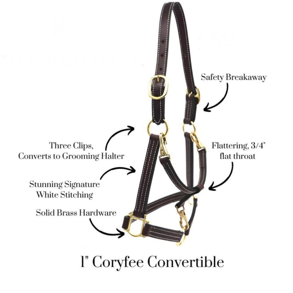 The Coryfee is the final halter of the three. This is a convertible halter!! It has a removable throat latch for easy grooming, bathing or photos. It features the flat throat latch and the standard triple stitching. I honestly haven’t seen a ton of these posted online. In a dream scenario I would love to use them when I run a barn for bathing, show prepping and photo shoots. I think for that reason they are running a deal on them currently, you can find that deal here.